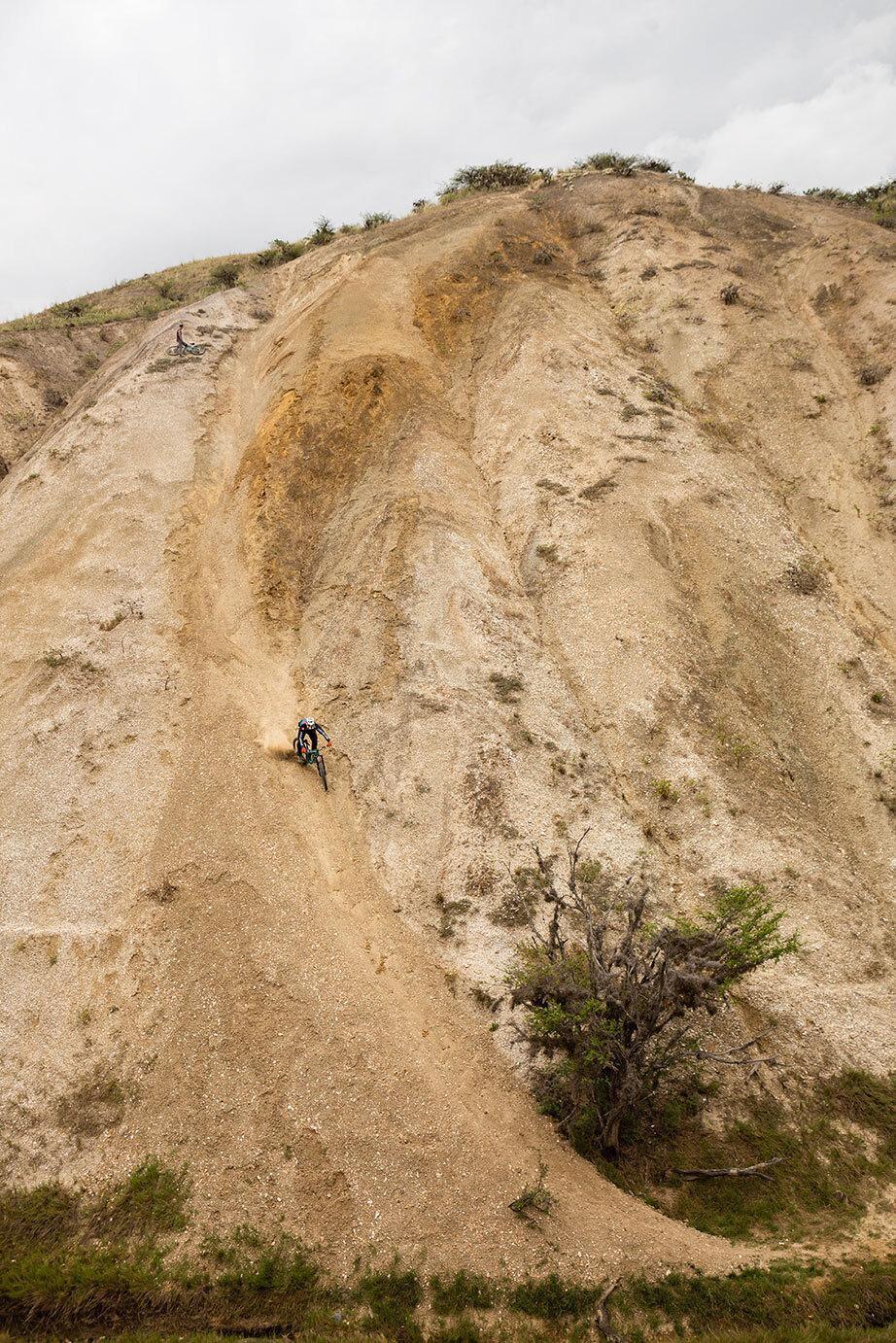 Devant une marche géante, Iven a décidé de porter son vélo. Lorsqu’il a entamé la descente, toute la pente l’a suivi et il a dû chevaucher sa propre avalanche !