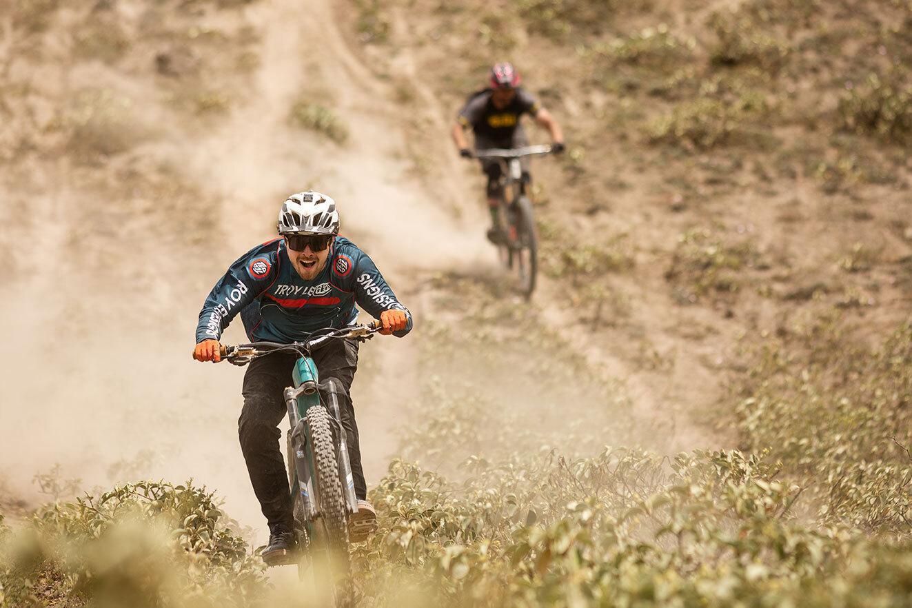 Rien de plus cool que de suivre Deaks dans la descente et de tracer des courbes sans but ni destination. Deux pistes de trail balisées descendent du volcan, mais les deux ne sont souvent identifiées que très approximativement. De ce fait, nous avons effectué quelques beaux virages et dépassements à grande vitesse, puisque Deaks, Iven et moi avons changé de position constamment pendant toute la descente. Notre départ était à 5 000 m, et à cette altitude, on ne se sent pas en forme du tout. Heureusement, le pédalage est très limité et nous avons pu effectuer trois descentes avec remontées sur le volcan. Une différence d’altitude énorme en très peu de temps !