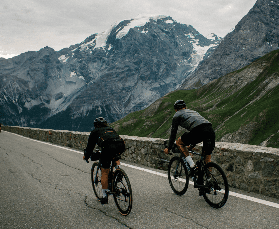 320 kilómetros y 5230 metros de desnivel acumulado separan a la torre de iglesia más alta del mundo del paso de montaña más alto de Italia, el Stelvio. ¿Hay que estar loco para hacer esa ruta en un solo día? En absoluto, es la respuesta de Marc, Hanna, Fabi y Jörg. Para estos amigos, era más una aventura compartida y pasarlo bien en la bici. Quizás el verdadero objetivo era ir juntos sufriendo altibajos y seguir pasándoselo bien.